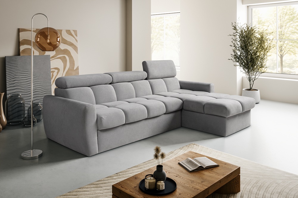 Jeśli szukasz nowoczesnego narożnika z funkcją spania, który oferuje wysoki komfort, regulowane zagłówki i praktyczny schowek na pościel, Bueno marki Pionier będzie doskonałym wyborem do salonu lub mieszkania.