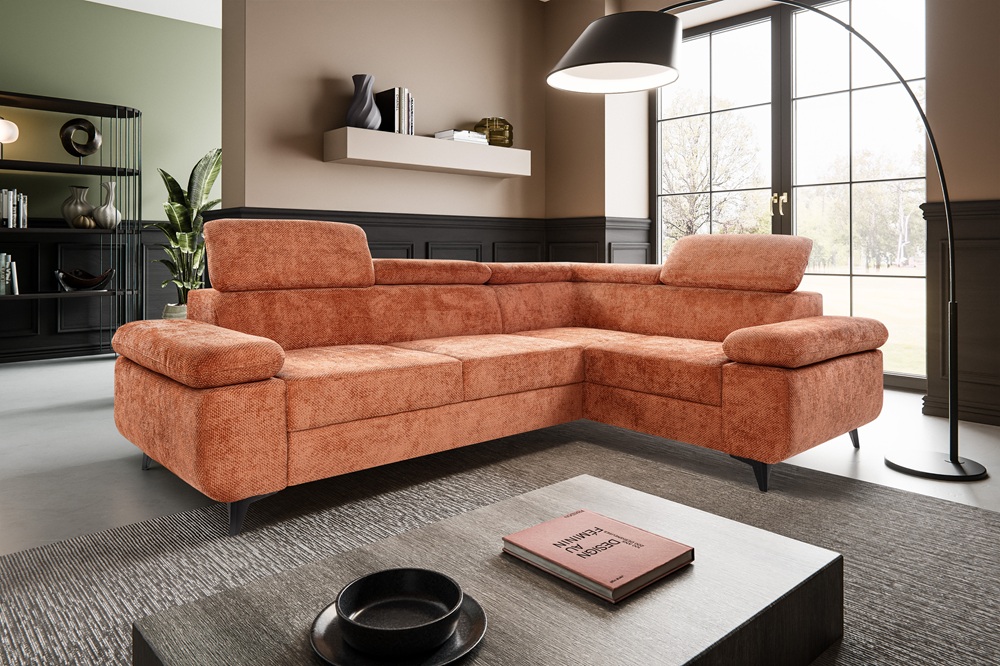 Narożnik Fabio to propozycja dla osób, które cenią nowoczesny design połączony z wysokim komfortem użytkowania. Prosta, elegancka bryła została przełamana miękkimi liniami i subtelnymi przeszyciami, dzięki czemu mebel prezentuje się lekko i stylowo, a jednocześnie stanowi wyrazisty element aranżacji salonu.