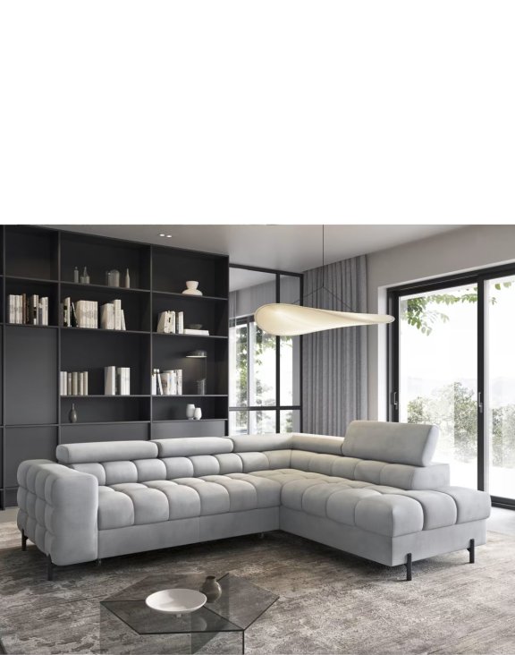 Narożnik Ferucce z funkcją spania i pojemnikiem marki Eltap to stylowy narożnik w układzie L, który łączy nowoczesny wygląd z wyjątkową funkcjonalnością.