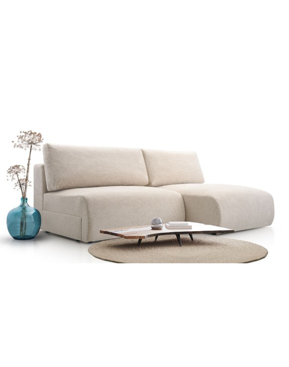Po rozłożeniu narożnik oferuje dużą powierzchnię spania – 218 × 133 cm, a praktyczny pojemnik na pościel zapewnia dodatkowe miejsce do przechowywania.