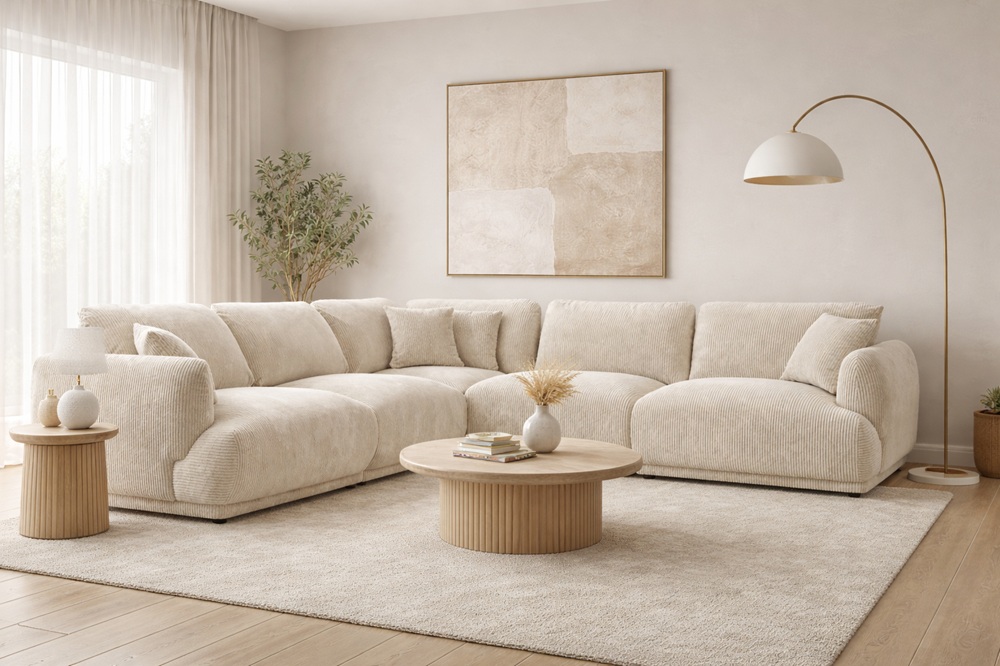 duży i wygodny narożnik modułowy do salonu