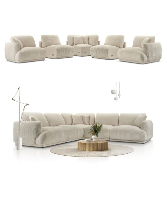 Ten nowoczesny narożnik modułowy składa się z 5 elementów:
