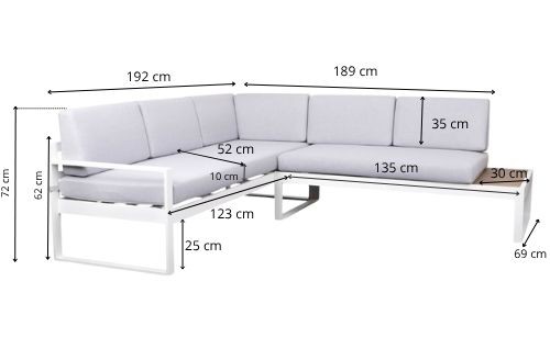 | Narożnik ogrodowy Loreto White 5-osobowy ze stolikiem – aluminium, biały | 2695 zł |