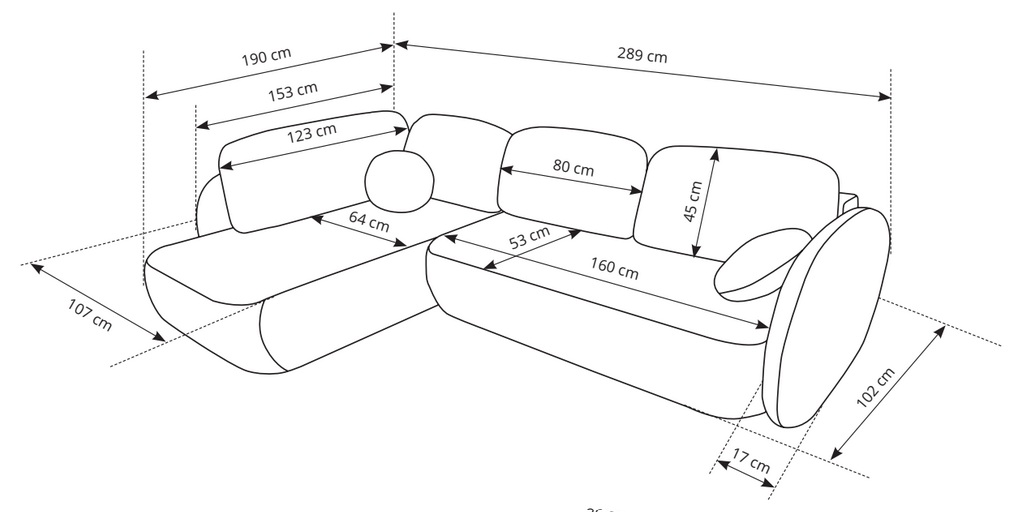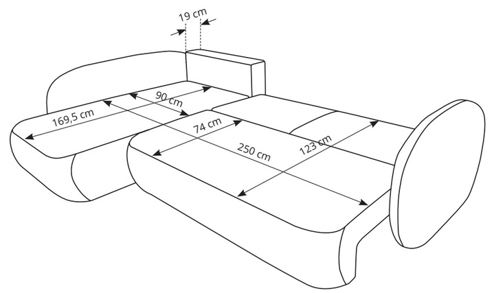 Duży narożnik o zaokąglonych kształtach Olio II z funkcją spania - 289 cm