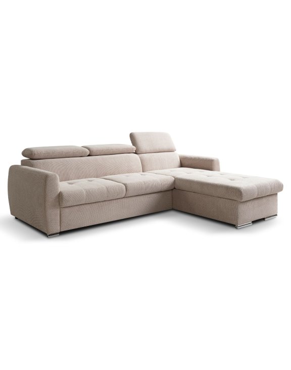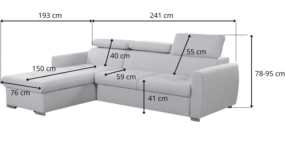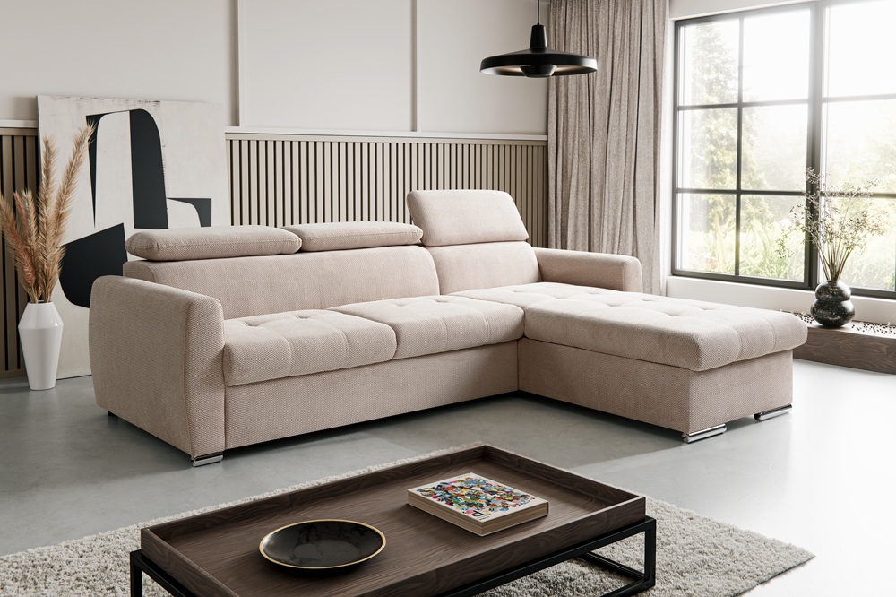 Elegancki design, regulowane zagłówki oraz praktyczne rozwiązania, takie jak funkcja spania i pojemnik na pościel, sprawiają, że idealnie łączy komfort codziennego użytkowania z estetyką.