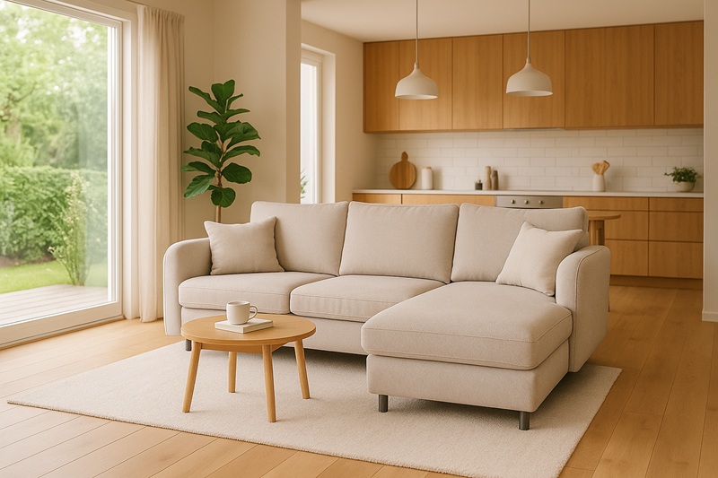 Narożnik boucle z funkcją spania Evola marki Snapty to nowoczesny i funkcjonalny mebel, który sprawdzi się zarówno w salonie, jak i pokoju dziennym.