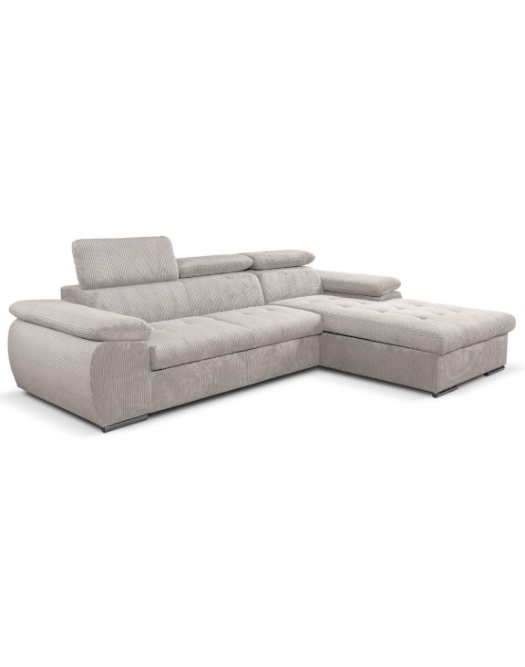 Narożnik został wyposażony w regulowane zagłówki oraz regulowane podłokietniki, które pozwalają dopasować pozycję oparcia do indywidualnych potrzeb użytkownika. Dzięki temu można wygodnie odpocząć, oglądać telewizję lub czytać książkę w idealnie dopasowanej pozycji.