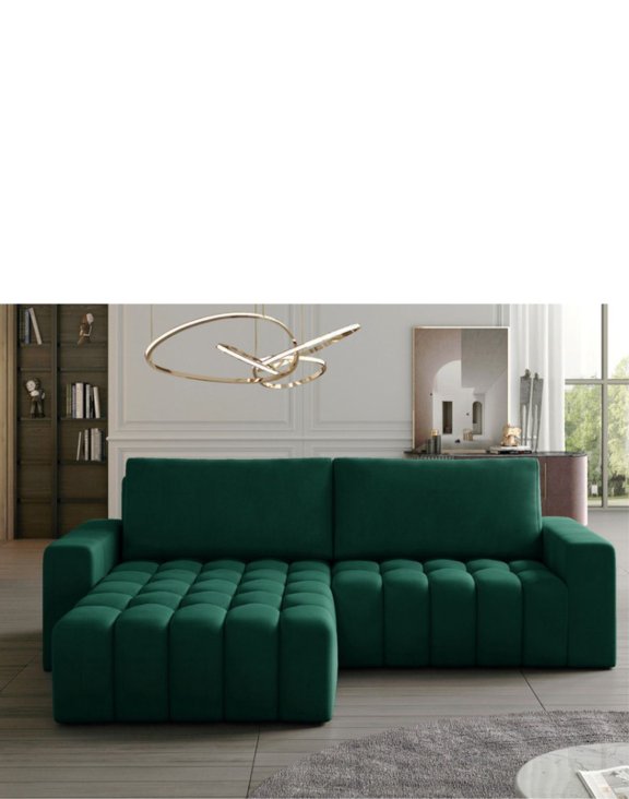 Narożnik Bonett marki Eltap w kolorze ciemnozielonym to produkt ciekawy od strony wizualnej i bardzo funkcjonalny. Niebanalny wygląd, eleganckie pikowania na siedzisku, przeszycia na bokach i podłokietnikach.