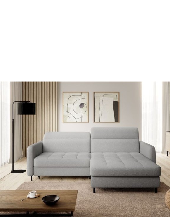 Narożnik z funkcją spania Gomsi, to perła z pośród mebli marki Eltap z nowoczesnymi regulowanymi zagłówkami.