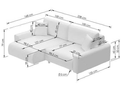 Narożnik jest bardzo funkcjonalny, dzięki łatwemu mechanizmowi rozkładania, w kilka chwil zamienisz go w komfortowe łóżko. Idealne rozwiązanie dla gości lub do codziennego odpoczynku.
