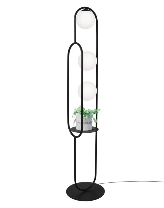 Lampa podłogowa z półką Finestra, to funkcjonalne oświetlenie z praktycznym zastosowaniem.