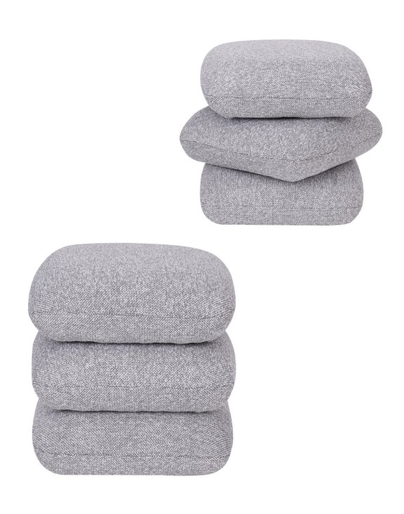 Pufa została obita wysokiej jakości strukturalną tkaniną w odcieniu eleganckiej szarości. Tkanina wyróżnia się wyraźnym, wyczuwalnym splotem, który dodaje głębi i faktury. Jest nie tylko przyjemna w dotyku, ale także trwała i odporna na codzienne użytkowanie.