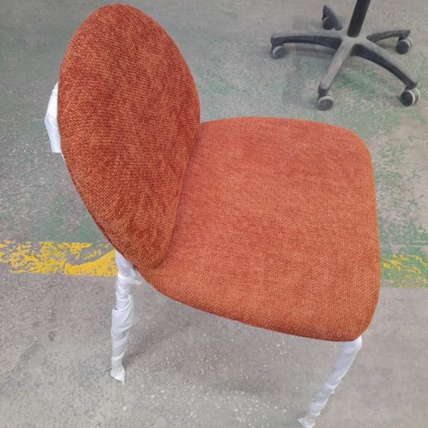 Krzesło pokryte jest miękką, strukturalną tkaniną o delikatnym połysku, co dodaje mu luksusowego charakteru.