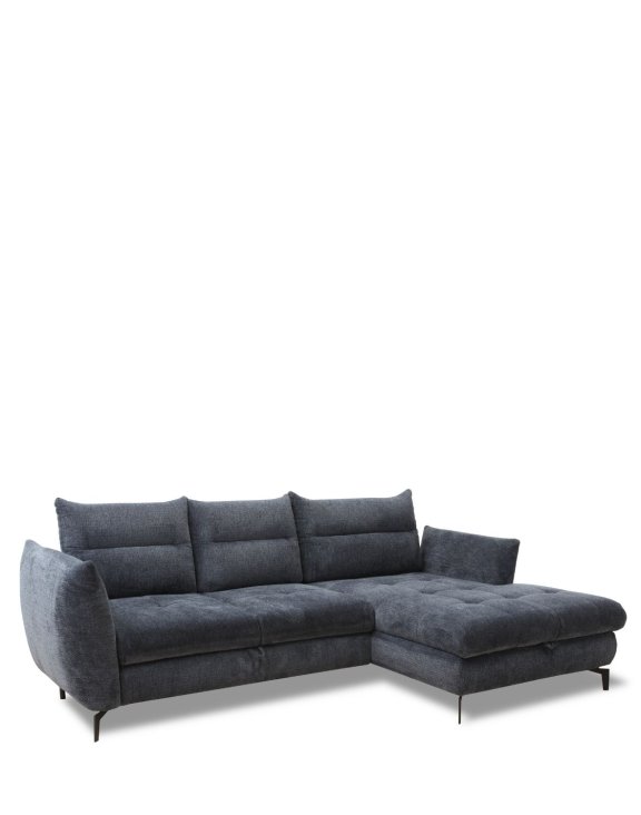 Wysokie, czarne, metalowe nóżki nadają narożnikowi nowoczesny, elegancki wygląd, który idealnie komponuje się z różnymi stylami wnętrz.