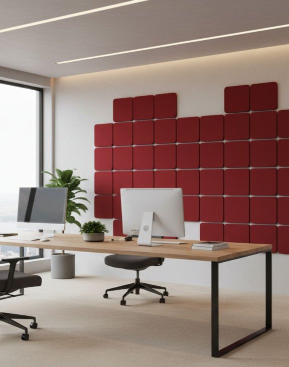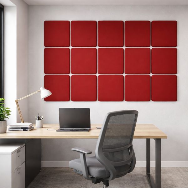 Kwadratowy format 35×35 cm, szeroka paleta tkanin oraz precyzyjne wykonanie sprawiają, że panele łączą wysoką skuteczność pochłaniania dźwięku z elegancką estetyką.