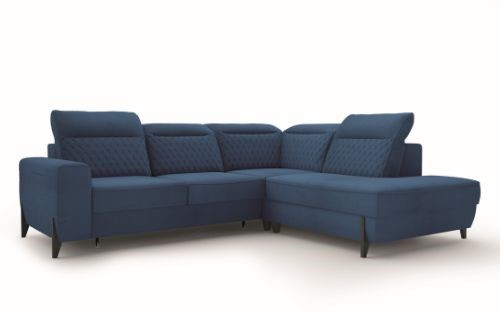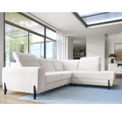 Pikowany, duży narożnik z regulowanymi zagłówkami i funkcją spania Fresh, polskiego producenta to odpowiedź na obowiązujące trendy wnętrzarskie.
