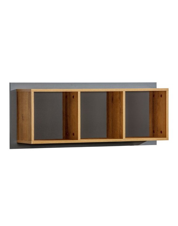 Półka wyposażona w trzy otwarte wnęki doskonale sprawdzi się, jako miejsce do przechowywania książek, dekoracji czy drobiazgów codziennego użytku.