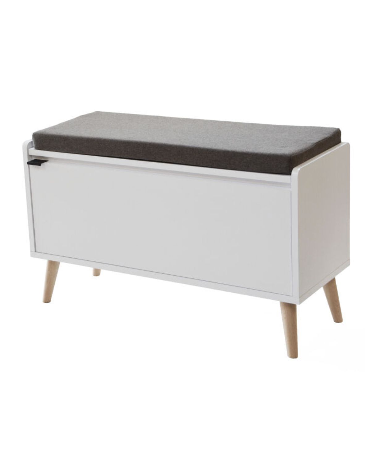 Pojemna szafka na buty z siedziskiem na wysokich drewnianych nóżkach, pomoże zorganizować przestrzeń i będzie niewątpliwą ozdobą przedpokoju. Sprawdź!