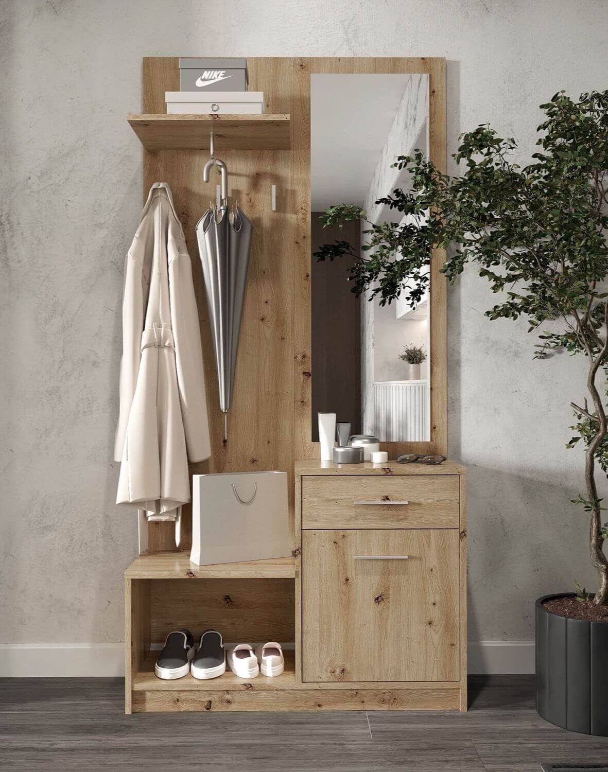 | Przedpokój Pergo z lustrem i szafką na buty, dąb artisan | 599 zł |