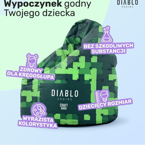 Pufa do siedzenia dla dzieci Diablo w wersji craft edition, sprawi, że na twarzy Twojego dziecka pojawi się uśmiech, szczególnie jeżeli jest fanem popularnej gry.