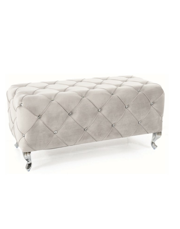 Stylowe chromowane nóżki dodają lekkości i klasy, dzięki czemu pufa świetnie sprawdzi się w salonie, przedpokoju, sypialni, a nawet w garderobie.