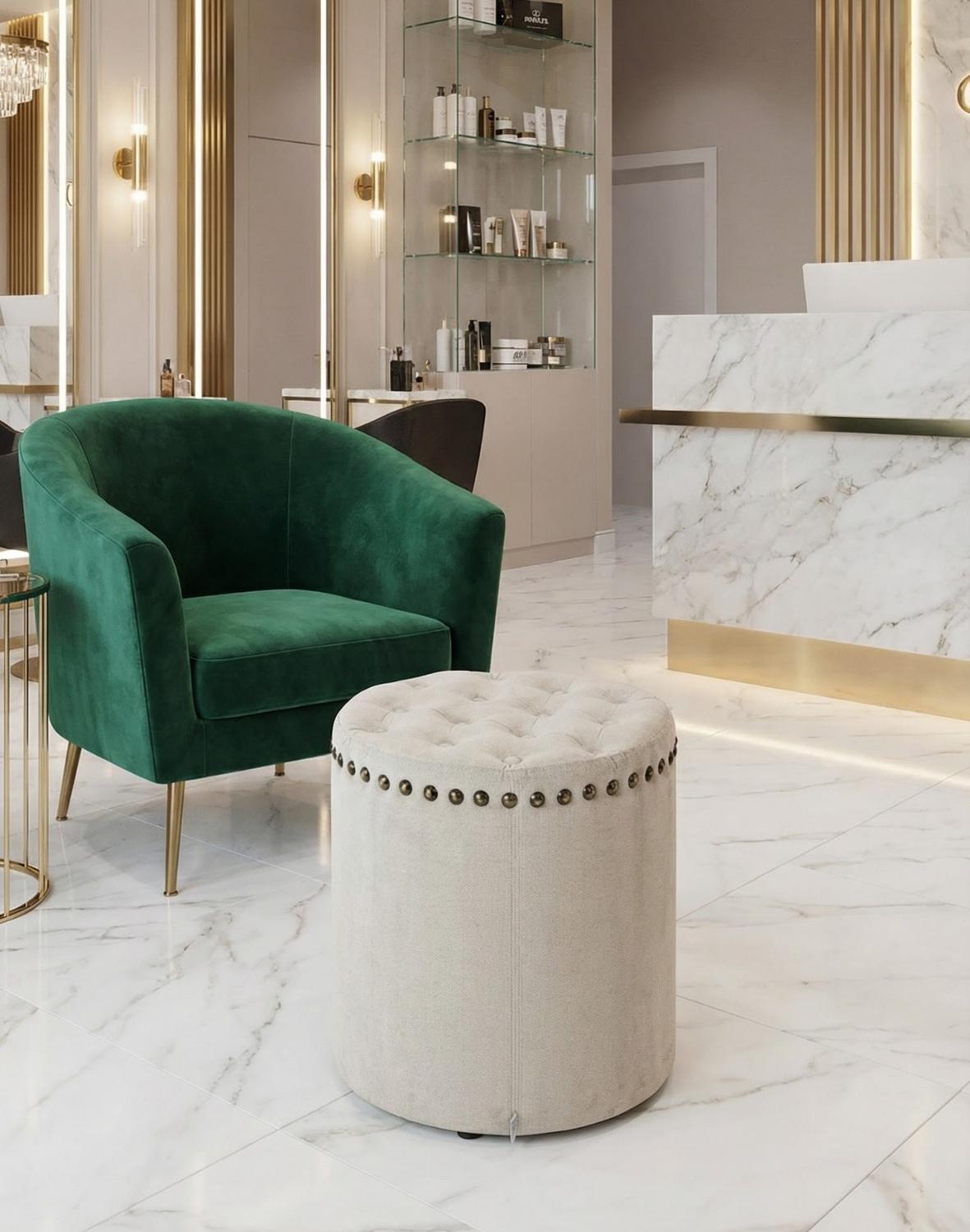 Komfortowa, tapicerowana pufa Omi okrągła o szerokim zastosowaniu, świetnej relacji ceny do jakości wykonania.