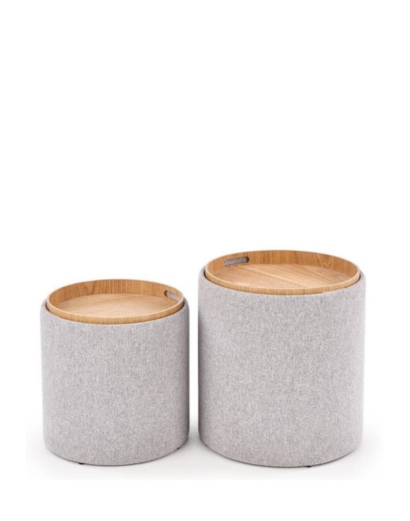 Pufa ze schowkiem Aviko marki Halmar to stylowy zestaw, składający się z dwóch pufów, które pełnią nie tylko funkcję siedziska, ale również oferują dodatkowe miejsce do przechowywania.