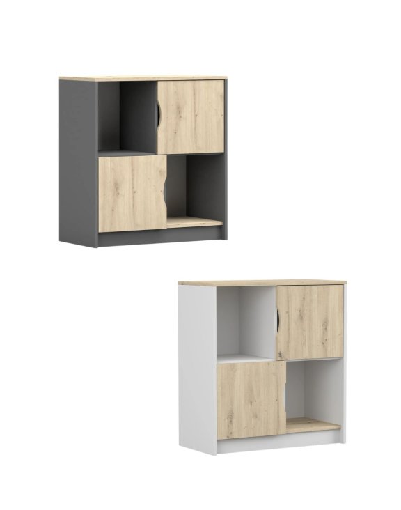 Dostępny w dwóch modnych kolorystykach – biały + dąb artisan lub szary + dąb artisan – z łatwością wpisze się w różne aranżacje wnętrz.