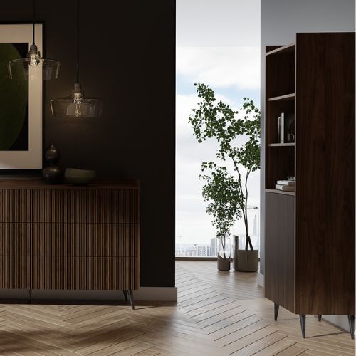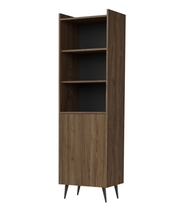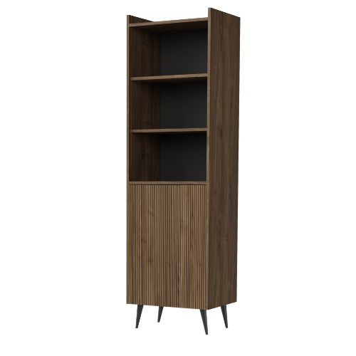 Regał wykończony w ciepłym odcieniu orzecha, wnosi do wnętrza przytulność i klasę, jednocześnie wpisując się w aktualne trendy aranżacyjne. To mebel, który doskonale odnajdzie się zarówno w salonie, jak i w sypialni, gabinecie czy nawet przedpokoju.