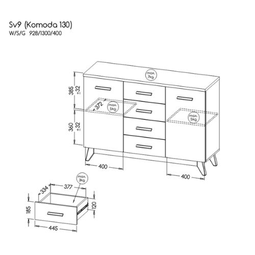 | Skandynawska komoda 130 cm na nóżkach Sven SV9 sosna andersen | 849 zł |