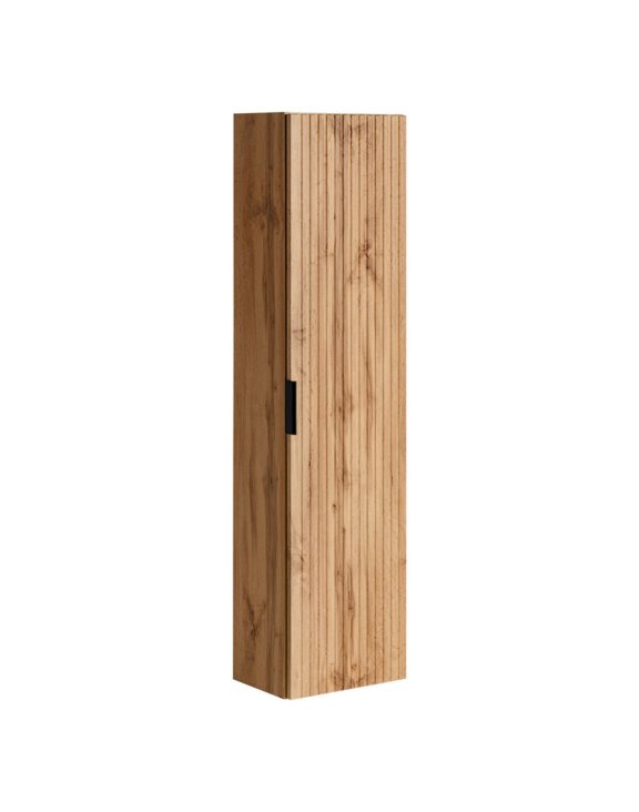 Szafka wysoka jednodrzwiowa Adel Oak ułatwia utrzymanie porządku w łazience i odpowiada na obowiązujące trendy aranżacyjne.