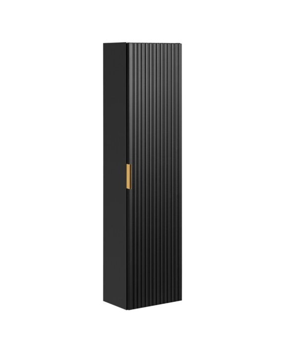 Słupek łazienkowy charakteryzuje się klasyczną proporcją były i ryflowanymi frontami w kolorze matowej czerni, co nadaje całości subtelnego, a zarazem wyrazistego charakteru.