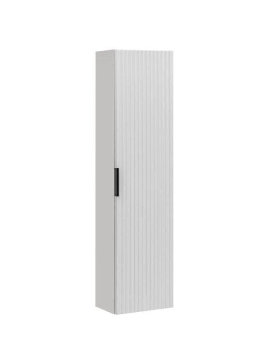 Słupek łazienkowy charakteryzuje się klasyczną proporcją były i ryflowanymi frontami w kolorze matowej bieli, co nadaje całości subtelnego, a zarazem wyrazistego charakteru.