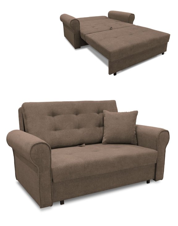 Szerokość kanapy wynosi 145 cm, co sprawia, że jest kompaktowa, ale oferuje więcej miejsca do siedzenia i spania.
