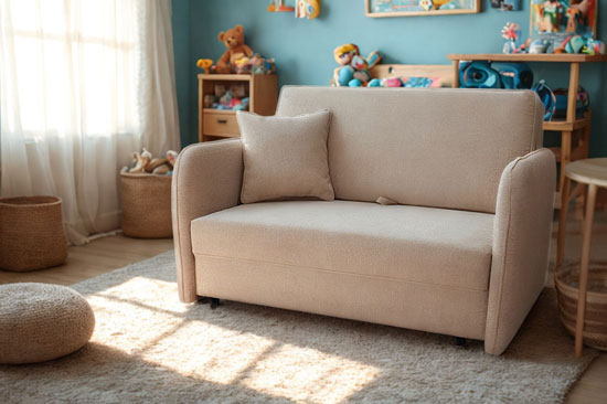 Mechanizm rozkładania jest łatwy w obsłudze, umożliwiając szybkie i bezproblemowe przekształcenie sofy w łóżko, co jest szczególnie przydatne w nagłych sytuacjach.