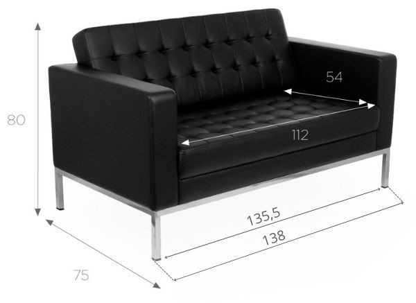 Czarna, elegancka sofa dwuosobowa S2 tapicerowana wysokiej jakości skórą ekologiczną.