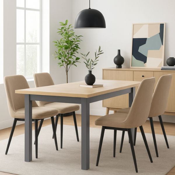 - Estetyka i uniwersalność - kolorystyka laminatu pozwala dopasować stół do różnych stylów wnętrz.
