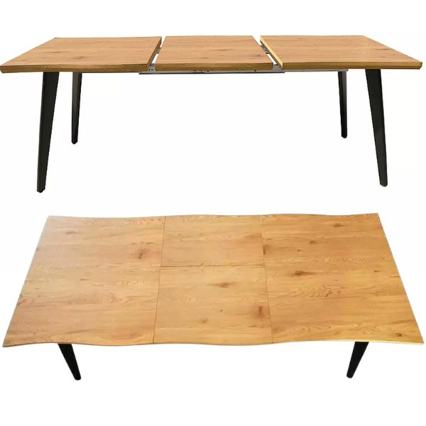 Rozkładanie odbywa się za pomocą praktycznej wstawki motylkowej, która chowa się wewnątrz stołu – bez konieczności szukania miejsca na przechowywanie dodatkowych elementów.