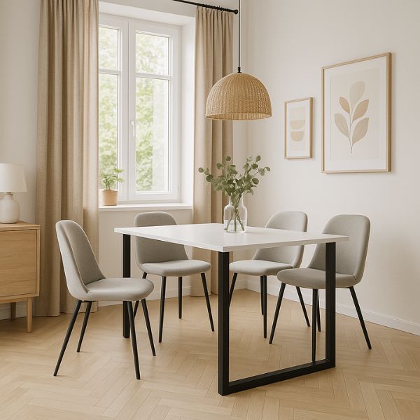 To świetna propozycja zarówno do mieszkania, jak i biura – gdy zależy Ci na solidnym stole, który łączy funkcjonalność z czystą formą i uniwersalnym kolorem blatu.