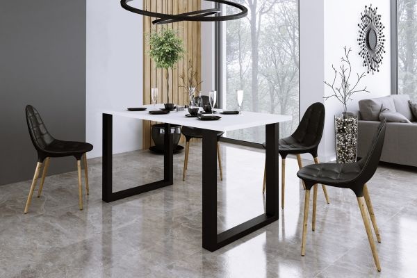 Konstrukcja: nogi metalowe malowane proszkowo w kolorze czarnym, blat biały - dzięki takiemu zestawieniu stół wpisuje się zarówno w aranżacje loftowe, industrialne, jak i skandynawskie czy nowoczesne.