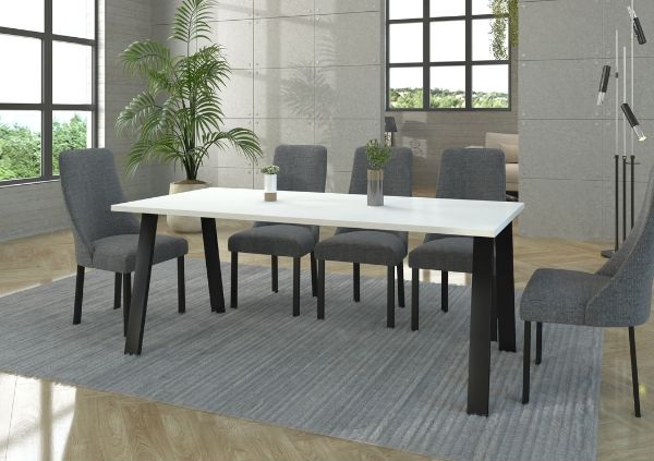 Metalowe nogi w kolorze czarnym matowym, malowane proszkowo, profil 80 mm × 40 mm - dodają stołowi nowoczesnego charakteru i zapewniają stabilność przez lata.