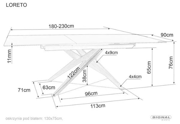 Rozszerzalna powierzchnia blatu – stół rozkłada się z długości 180 cm do 230 cm, co daje dodatkową przestrzeń przy większych spotkaniach.