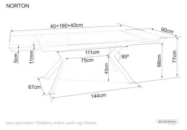 - Geometryczne, metalowe nogi w kształcie litery „X” nie tylko przyciągają wzrok, ale przede wszystkim zapewniają wyjątkową stabilność – nawet przy maksymalnym rozłożeniu stołu.