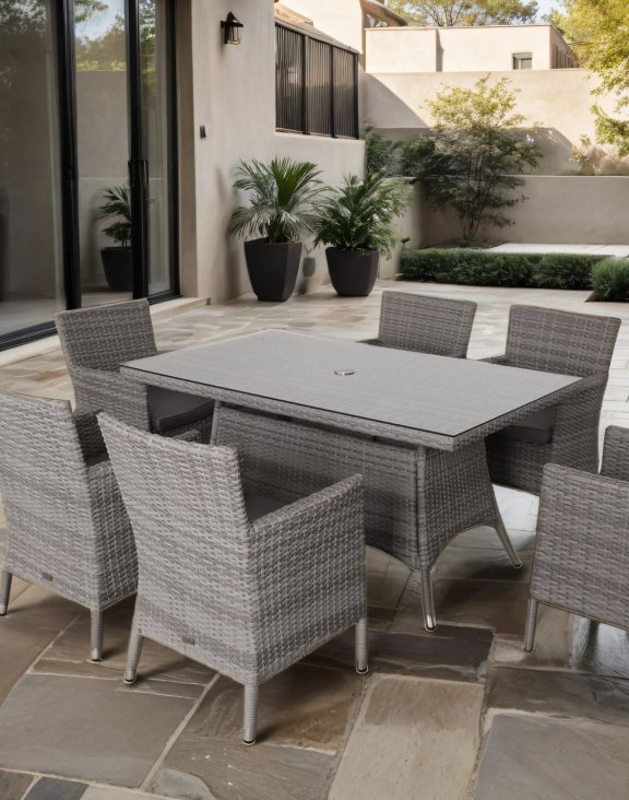 Stół ogrodowy z krzesłami Krk: stół 150 cm i 6 krzeseł marki Snapty Garden to kwintesencja elegancji i funkcjonalności dla każdego, kto pragnie wprowadzić do swojego otoczenia nutkę śródziemnomorskiego stylu.