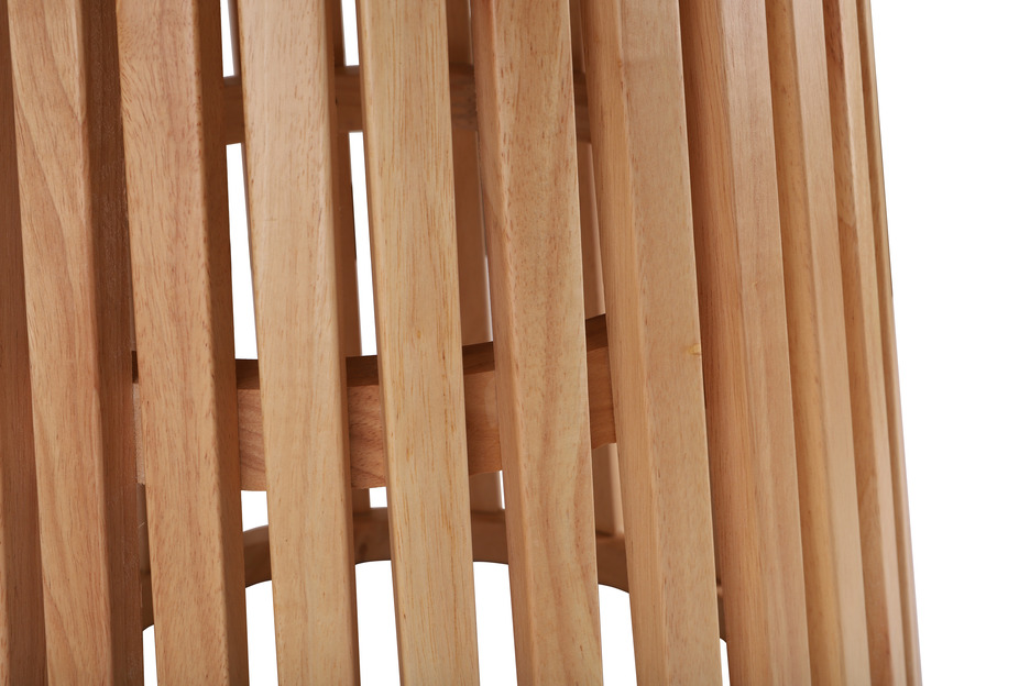 Jego wyjątkowość tkwi w szczegółach, a noga stołu jest znakomitym przykładem tego unikalnego wzornictwa. Została wykonana z precyzyjnie ułożonych lamelek, które nie są zabudowane, co sprawia, że można dostrzec prześwity pomiędzy nimi.