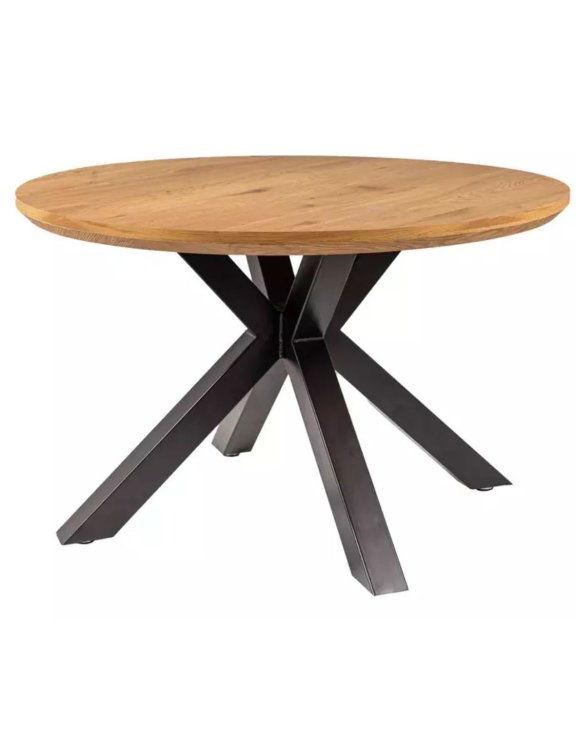 Okrągły blat o średnicy 120 cm wykonany został z płyty z okleiną w dekorze dębu, z wyraźnym usłojeniem, które nadaje mu wyjątkowego charakteru i elegancji.