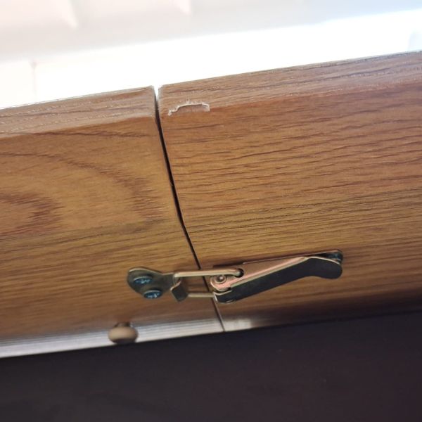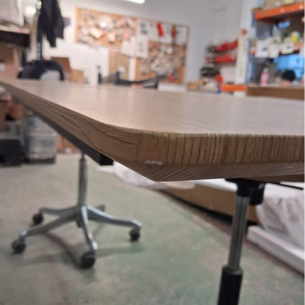 Rysy, przetarcia na blacie, nierówne łączenie oraz porysowane nogi. Zdjęcia wad poniżej.