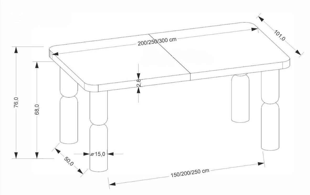 Dzięki możliwości rozsunięcia długości od 200 cm do 300 cm, świetnie sprawdza się podczas spotkań z gośćmi, uroczystych obiadów lub wspólnych kolacji, kiedy potrzebujesz większej powierzchni blatu.