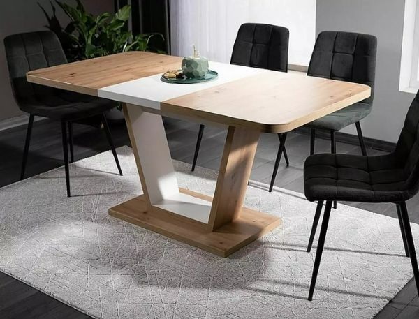 - Połączenie dekoru dąb artisan z białym matem sprawia, że stół łatwo dopasujesz do wnętrz nowoczesnych, skandynawskich i loftowych.