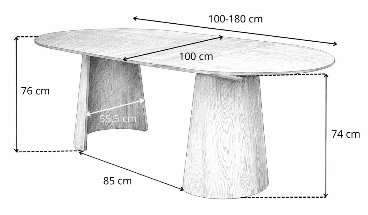 Stół Enzo M Plus marki Avida Design to okrągły, rozkładany stół w kolorze dziki dąb, który powiększa się z 100 cm do 180 cm długości. Wysokość 76 cm oraz szerokość 100 cm sprawiają, że model doskonale sprawdzi się zarówno w mniejszych mieszkaniach, jak i w przestronnych jadalniach.